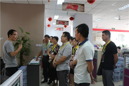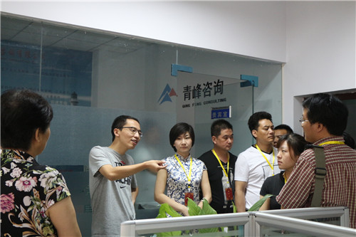 在公司CEO余進先生、行政部經(jīng)理付士奇先生的帶領下,朱會長及會員們參觀了青峰網(wǎng)絡的所有辦公場所及旗下子公司。在參觀過程中,余總向大家介紹了公司的發(fā)展歷程和公司生態(tài)鏈,著重講解了公司文化和各項福利政策,朱會長及會員們表現(xiàn)出極高的興趣和贊同。